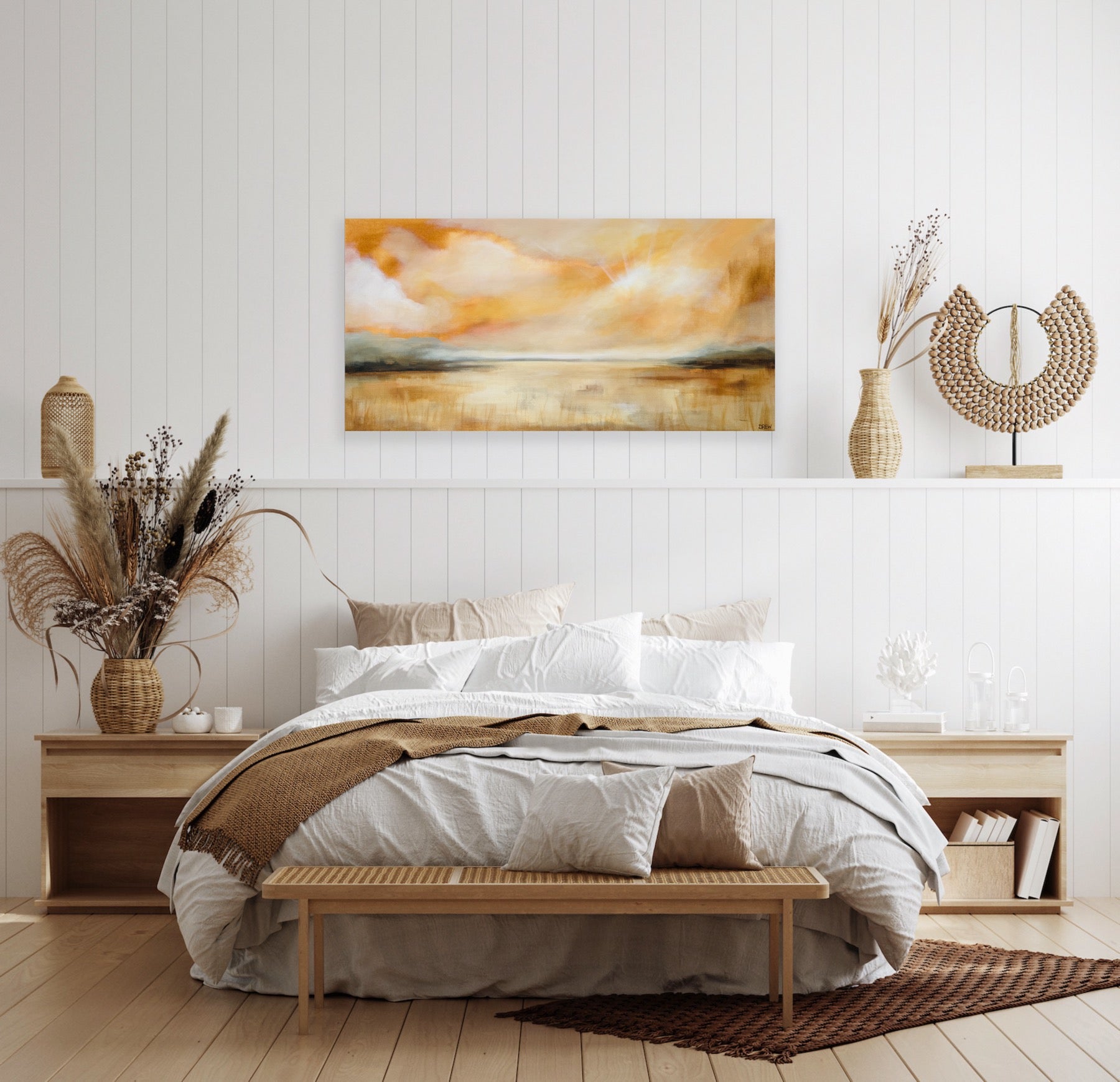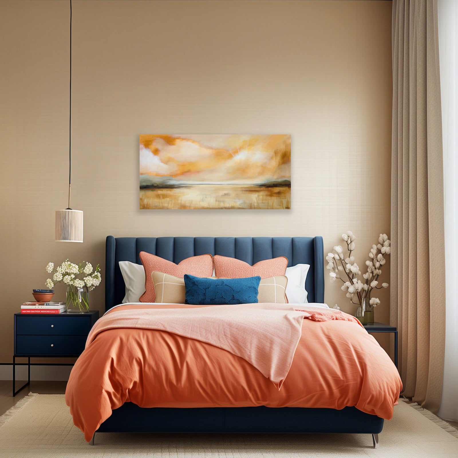 Invite the serene landscape of painted clouds from Whispers of Light to embrace your walls with warm tones. Ideal for introducing a touch of tranquility to any room.